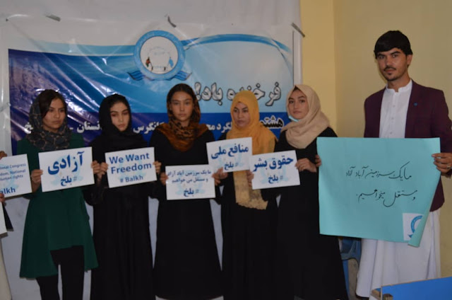 در ولایت بلخ نمایندگان کانگرس ملی افغانستان فعالین حقوق زنان هشمین سالگرد مجمع عمومی کانگرس ملی را بخاطر حمایت از منافع ملی ٬آزادی و حقوق بشر در افغانستان در شهر مزار شریف دایر نموده اند و پیام محترم ریس کانگرس ملی افغانستان و هیت رهبری کانگرس بوسیله مسول شورای ولایتی بلخ آقای اسدالله عزیزی ارایه گردید .
